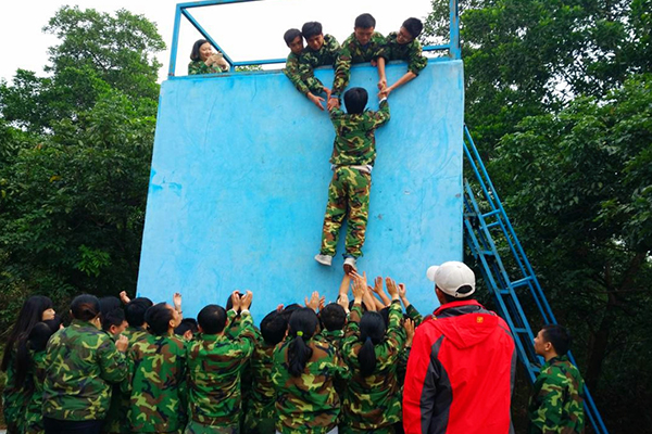 時間。大家一致推選營銷副總擔任總司令,并制定出在1個小時內(nèi)完成的目標。項目是要求每位成員都要翻越4米多高的光滑墻面,且不能